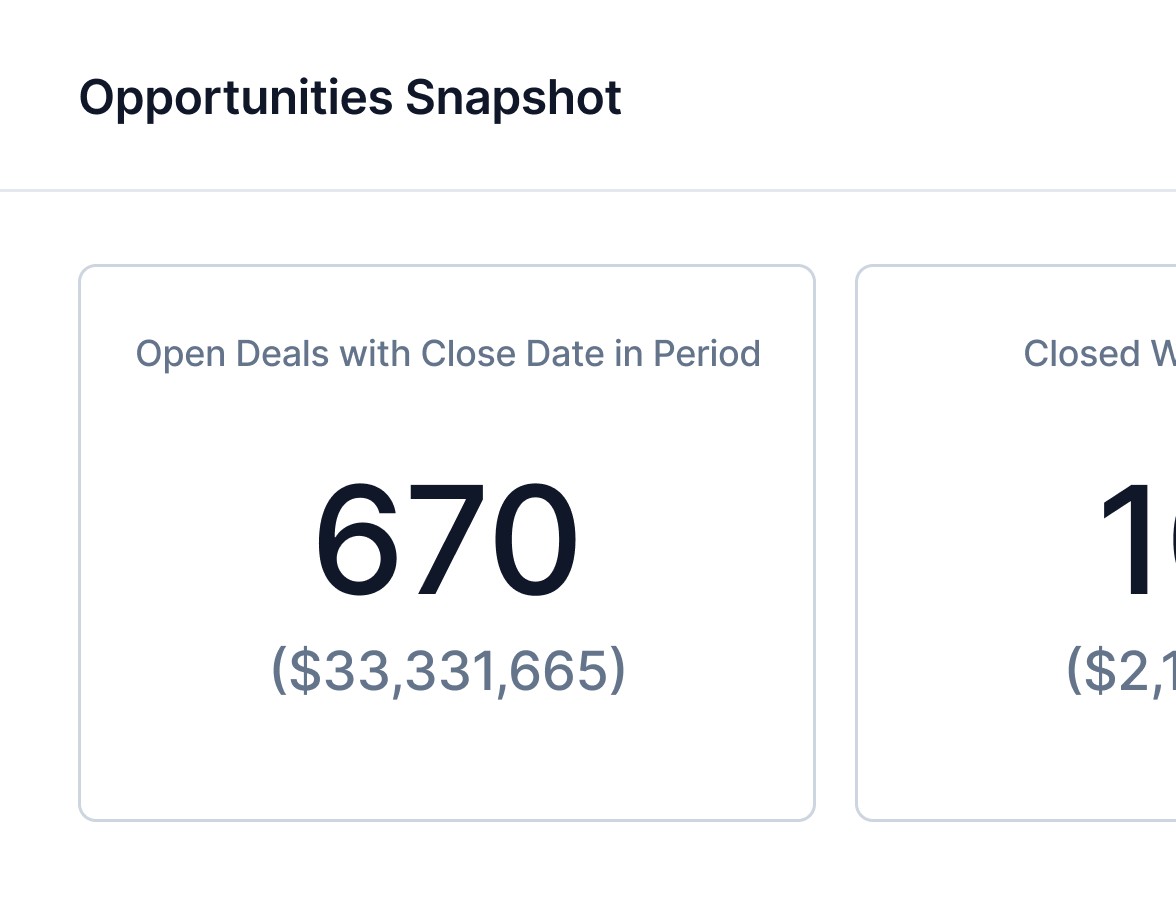 When new customer acquisition stalls, the root cause is usually buried in conversion data that no one consistently tracks. Pipeline Velocity gives you continuous visibility into stage-to-stage conversion, segmented by business unit, industry, and rep, so funnel gaps surface before they hit the forecast.